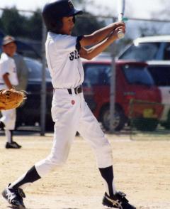 小学校3年生の2学期からは岡空小児科医院開設に伴い、境港の小学校に転校しました。 転校後は、多少休み癖は残っていましたが、元気に登校できるようになり、新しい友人も増え、4年生からは境小学校少年野球クラブに入部し、私も中学校野球部キャプテン、大学でも野球をしていましたので、コーチとして小学校4年生~6年生の3年間は浩と私の関係はとても濃厚な3年間でした。 彼は運動能力が特に優れていたわけではありません。 ただ、プライドの高い努力家でしたので、とにかく一生懸命練習しました。 練習後はぐったりして、暗くなって帰ってきては玄関で30分ぐらい休息していたのを今でも思い出します。 5年生からはセンターで8番のレギュラーとして、試合に出場し、非力でしたが、声とバントだけはチーム1、守備は堅実であり、たまに思いがけないヒットを打つ意外性のある野球少年でした。