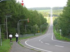 どうですか! すばらしい景観でしょう! カメラマンクリボウの素晴らしいアングルです。 いつまでもまっすぐとうねった道をただひたすら、中標津の市街地向けてジョグしたのでした!