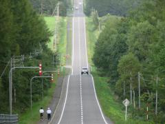 開陽台~中標津市街地へは基本的に下りです。 ほんのちょっぴり曲がっていましたが、どこまでもまっすぐな道でした!