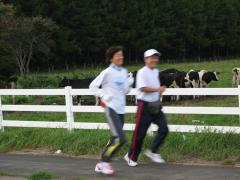 最後は牛君の応援です! モウちょっとだよ! ・・・ぼちぼち時間だよ! これから岩盤浴に行こう! S先生が待ってるぞ! 全長8km、50分のジョギングでした~(その2に続く)