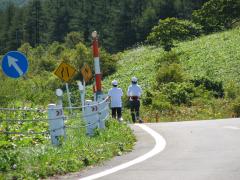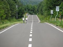 前夜はジョギングのあと、S先生ご希望の岩盤浴のある『湯元温泉中標津保養所温泉旅館』で、はじめての岩盤浴に挑戦しました。 汗が体の中心から、元気いっぱいに弾け出すという感じです! ぜひ皆様も挑戦してみて下さい。 岩盤浴でリフレッシュした後は、中標津でいちおしの『鮨・和食わたなべ』で北海道の旬の味覚に舌鼓を打ち、今日に備えました。 今日は昨日と同じ開陽台を起点ですが、養老牛温泉へと向かいました。 18kmの登りに挑戦です!