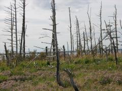 トドワラ 野付半島は江戸時代の中頃まで、トドマツ・エゾマツ・ハンノキ・カシワなどの樹種から成る原生林がありました。 しかし地盤沈下によって海水が浸入し、木々が立ち枯れを起こしました。 トドワラとはトドマツの枯れ木群のことで、荒涼とした景観を作り出しています。 近年風化が進行し、近いうちにトドワラ跡になるといわれています。