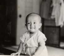 昭和30年7月、誕生日前。 乳児期は今流行のちりちりヘア(天然パーマ)だったので、坊主頭にされたそうです。 その後は普通のさらさらヘアになりました・・・