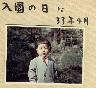昭和33年4月、私立聖心幼稚園にめでたく入園! ネクタイなんか絞めちゃってね!? この聖心幼稚園は、前述の父、二人の兄、私、次兄の三姉妹、二人の我が子がめでたく卒園しています。 また、平成16年現在で父が理事長、私が理事を勤めされて頂いています。 園長先生はじめすばらしいスタッフが揃っています。 今一番のお勧めです。