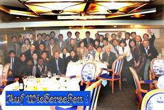 豪華フランス料理のデイナーの後、船内で記念撮影! もうみなさんすでに出来上がっています! 下船後は二次会・・・三次会・・・四次会・・・おしまい!