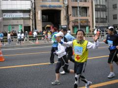 銀座、日本橋を走り、人形町までです。 この区間はまさに多数の観衆にあふれ、まさに東京マラソンのハイライトの始まりですが、さすがに若干の疲れは隠せず、少しだけ遅れだしたようです。